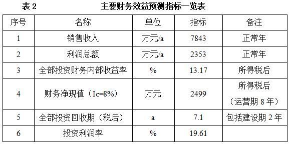 项目达产后,年销售收入7843万元,利润2353万元,投资回收期7.1年(税后,含建设期2年),投资利润率19.61%。