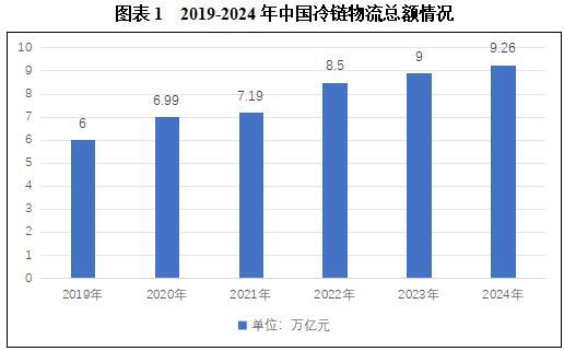 随着市场需求的持续增长、政府政策的支持、冷链基础设施的不断完善以及技术进步和创新驱动,中国冷链物流总额不断增长。2023年中国冷链物流总额达到8.90万亿元,比2022年增长400亿元,同比增长4.6%。2024年中国冷链物流总额增长至9.26万亿元。