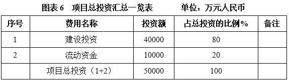 本项目总投资为50000万元,其中:建设投资40000万元,流动资金10000万元。