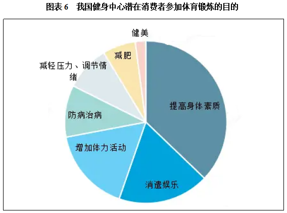 消费者行为来看,20岁及以上城乡居民参加体育锻炼的主要目的是:提高身体素质(35.6%),消遣娱乐(17.4%)和增加体力活动(16.0%)。其它目的依次是:防病治病,减轻压力放松,减肥,健美,提高运动技巧,社交等。