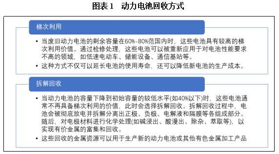 动力电池回收是指对已使用过的废旧动力电池进行收集和再利用的过程。目前,动力电池回收主要包括两种方式:梯次利用和拆解回收。