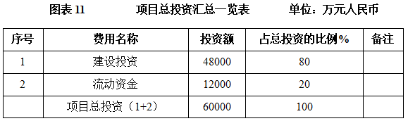 本项目总投资为60000万元,其中:建设投资48000万元,流动资金12000万元。