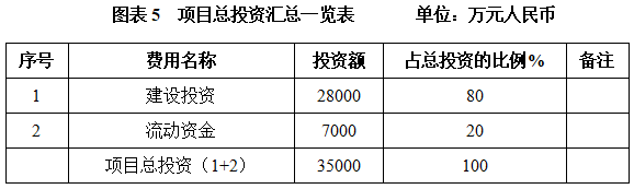 本项目总投资为35000万元,其中:建设投资28000万元,流动资金7000万元。