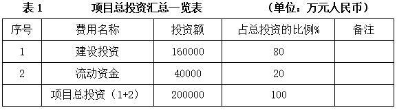 项目总投资200000万元,其中建设投资160000万元。