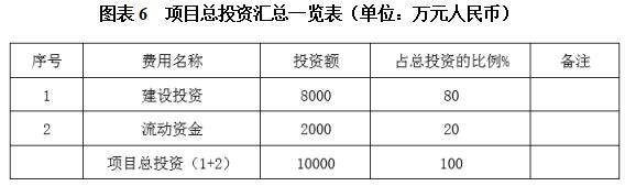 项目总投资10000万元,其中建设投资8000万元,流动资金2000万元。