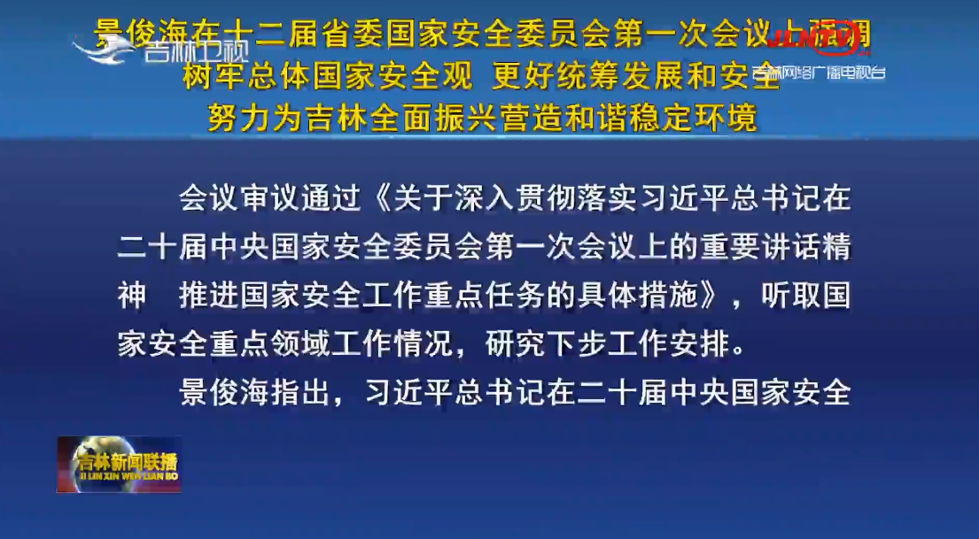 6月27日,省委书记、省委国家安全委员会主任景俊海主持召开十二届省委国家安全委员会第一次会议。他强调,要深入贯彻习近平总书记在二十届中央国家安全委员会第一次会议上的重要讲话精神,树牢总体国家安全观,更好统筹发展和安全,坚决扛稳维护国家“五大安全”重大政治责任,努力为吉林全面振兴营造和谐稳定环境。省长、省委国家安全委员会副主任胡玉亭出席会议。