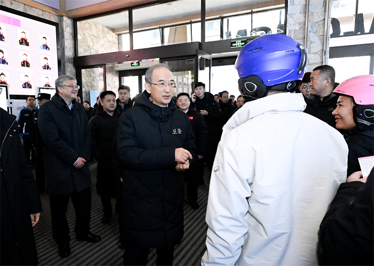 2025-2026新雪季,中旅松花湖度假区新增15万平方米特色雪道,精心打造树林道、野蘑菇道、波浪道等多样化地形,吸引了来自世界各地的众多滑雪爱好者。黄强、胡玉亭走进雪具大厅,与外省游客亲切交流,祝愿他们在吉林玩得尽兴。得知中旅松花湖度假区预售火爆,黄强十分高兴,他说,这个雪季,我省采取一系列政策措施,发放1亿元冰雪消费券,安排中小学生放雪假,就是要进一步激发冰雪经济活力。省内各滑雪场要抓住有利契机,加大宣传力度,提供更高品质服务,共同把吉林打造成世界级冰雪旅游目的地。在吉林化纤展位前,黄强、胡玉亭详细了解冰雪装备新产品性能,鼓励企业做好创新研发,推出更多市场欢迎的优质产品。黄强、胡玉亭还来到度假区商业街,实地察看商户经营情况。