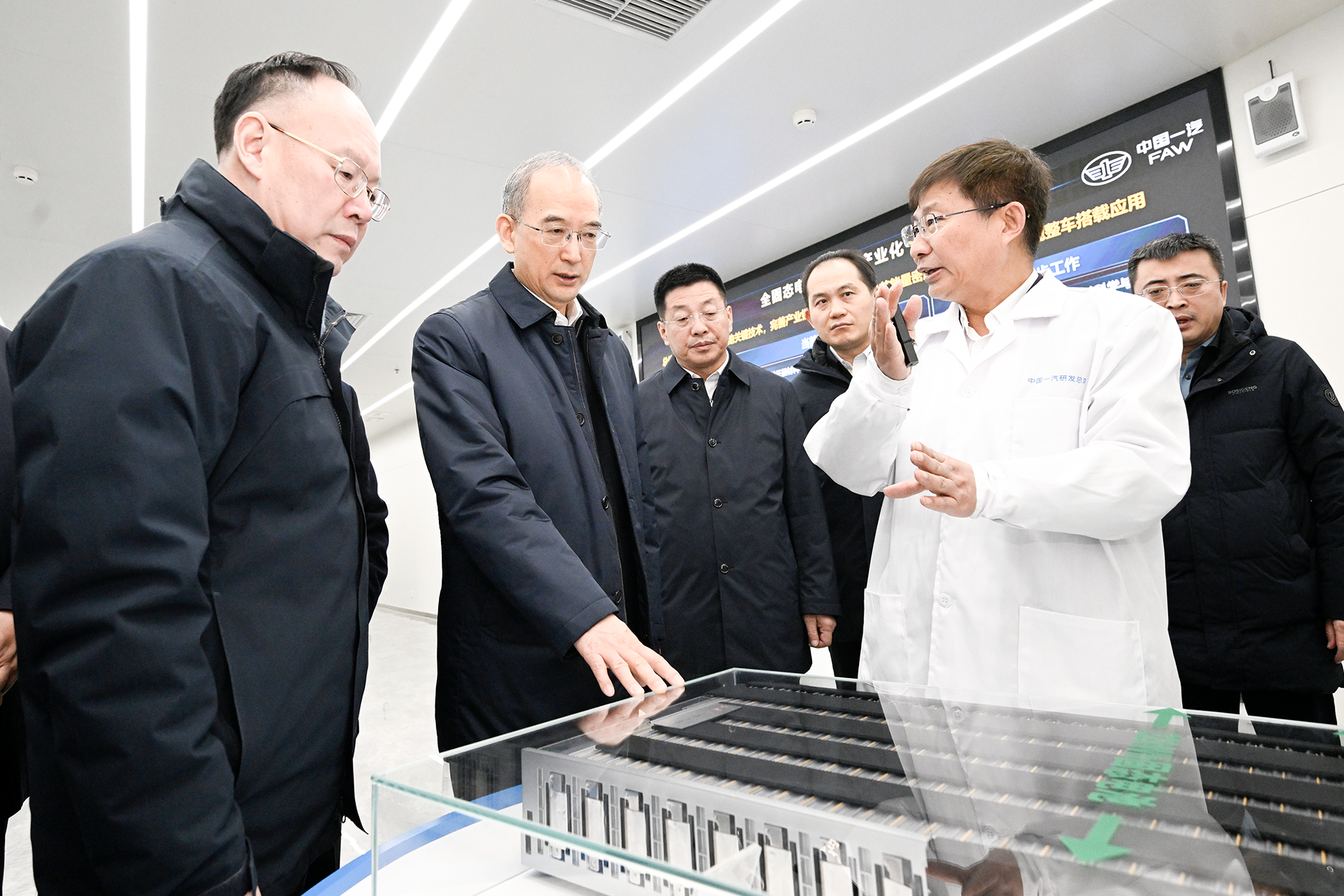 3月18日,省委书记黄强到中国第一汽车集团有限公司调研,在中国一汽科技创新基地固态电池实验室详细了解硫化物全固态电池技术研发进展。张野 摄