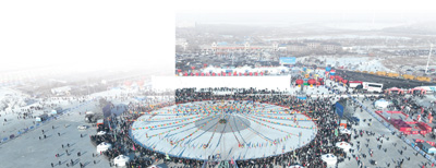 游客在查干湖冰面上体验冰雪那达慕项目。王佳亮 摄