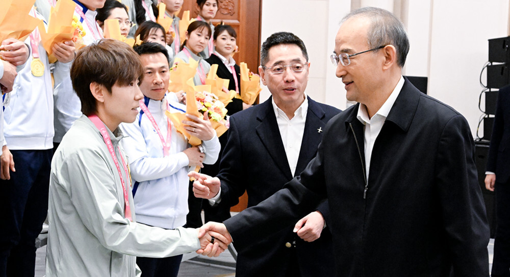 黄强指出,两队夺冠,体现了吉林竞技体育发展水平、体教融合发展成果,展现了吉林健儿昂扬向上的精神、锐不可当的勇气。家乡人民为你们喝彩,为你们骄傲。希望你们继续勇攀高峰,站得更高一些、看得更远一些,把奖杯放进荣誉室,科学训练、刻苦训练、超越自我,努力为国家、为吉林争光争气。做好青少年榜样,引领孩子们参加体育、热爱体育、享受体育,让他们脚下有力、眼中有光、脸上有笑,德智体美劳全面发展。大力弘扬体育精神,把赛场上的顽强作风、必胜信念、团队精神带到工作、学习、生活中,汇聚强大正能量。