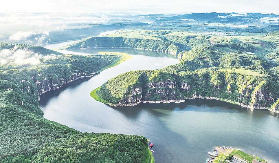 靖宇县凭借资源要素丰富、产业底蕴深厚等优势,生态旅游业发展取得明显成效。图为白山湖仁义风景区风貌。潘硕 摄(资料图片)