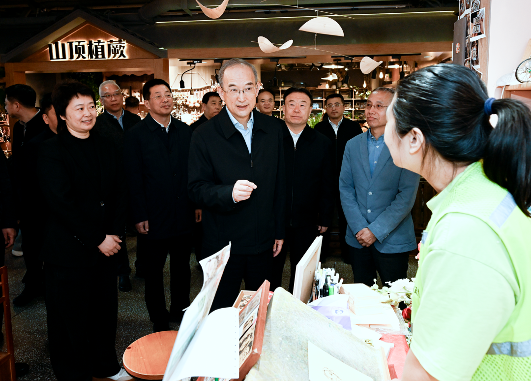 4月13日,省委书记黄强在长春调研,在“这有山”文旅综合体详细询问文创店铺经营情况。张野 摄