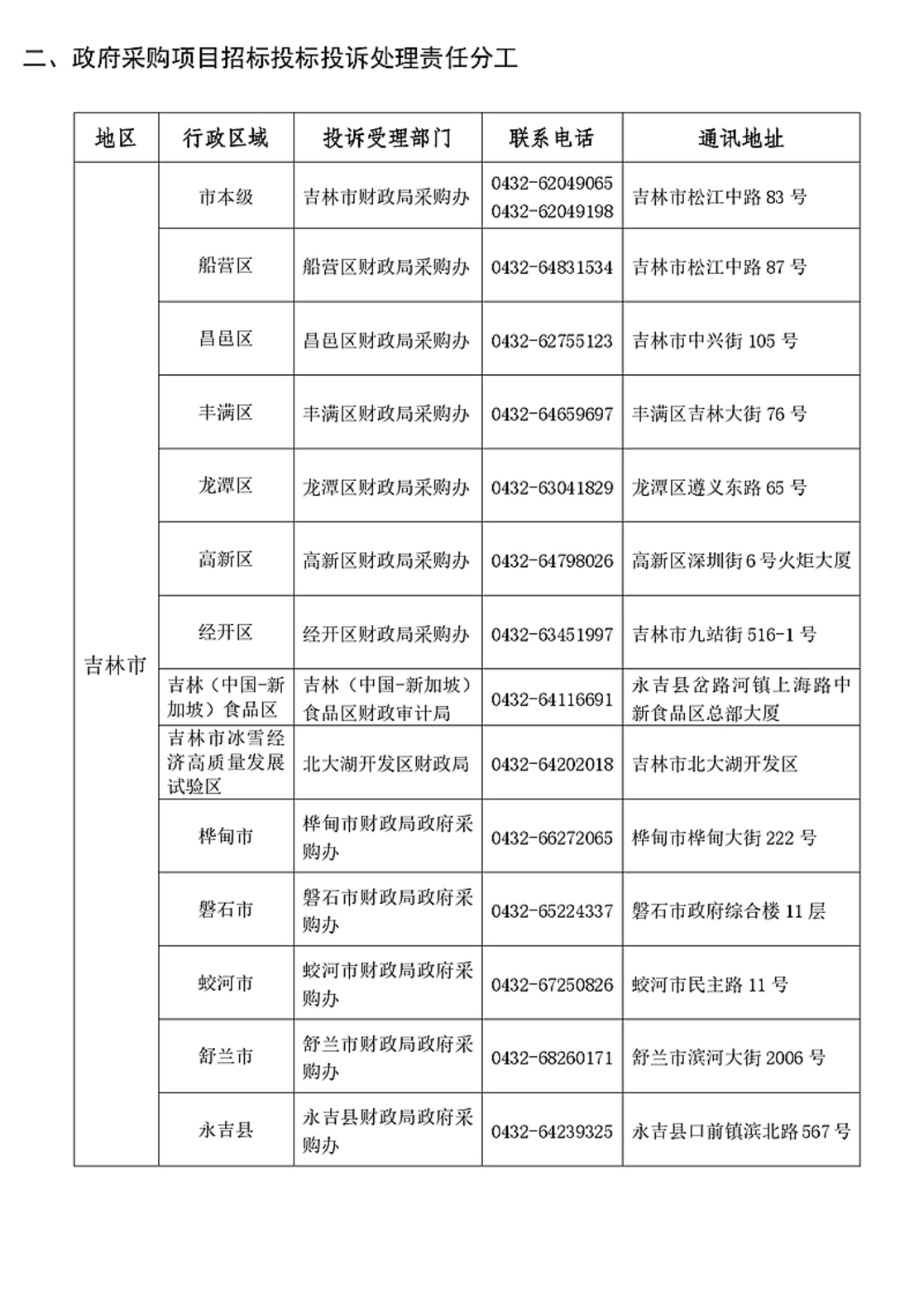 吉林市政府采购项目招标投标投诉机制