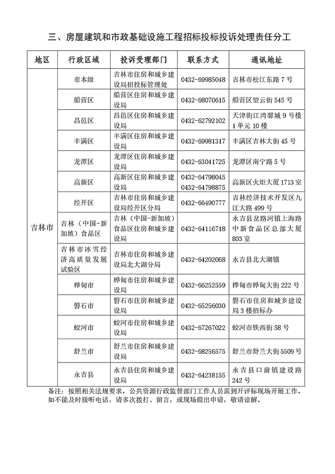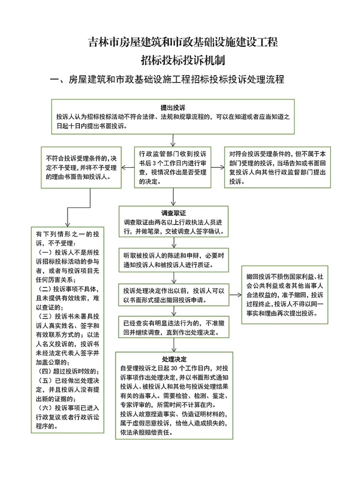 吉林市房屋建筑和市政基础设施建设工程招标投标投诉机制