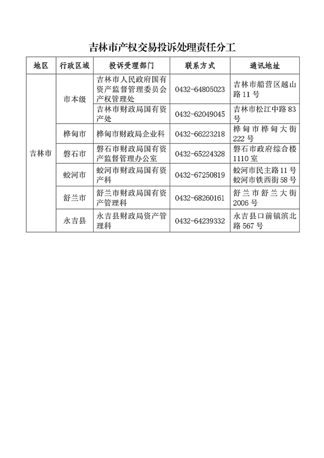 吉林市产权交易投诉处理责任分工