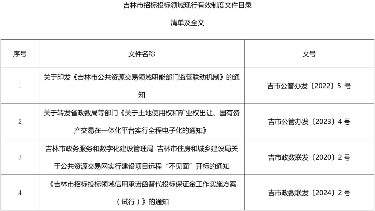 吉林市招标投标领域现行有效制度文件目录 清单及全文