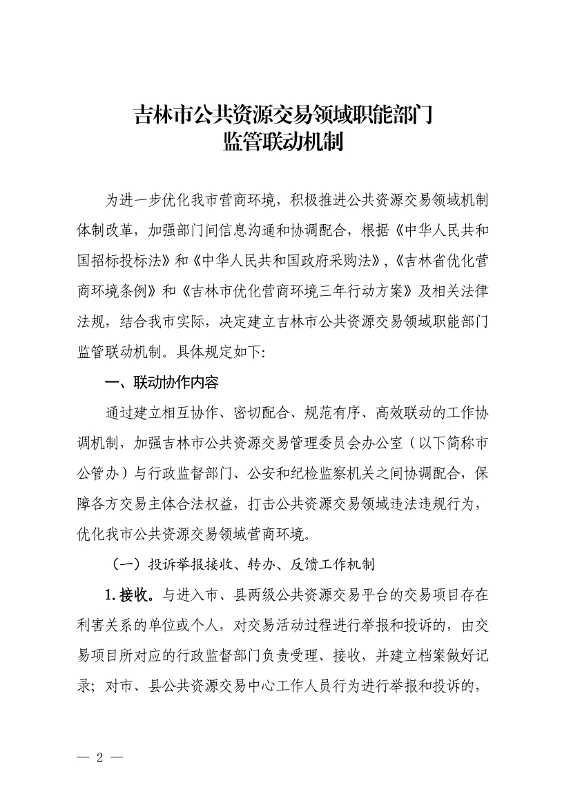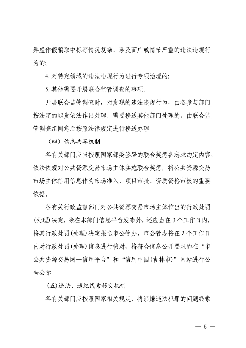 关于印发《吉林市公共资源交易领域职能部门监管联动机制》的通知吉市公管办发〔2022〕5 号