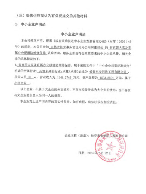 供应商名称:长春东安消防工程有限公司