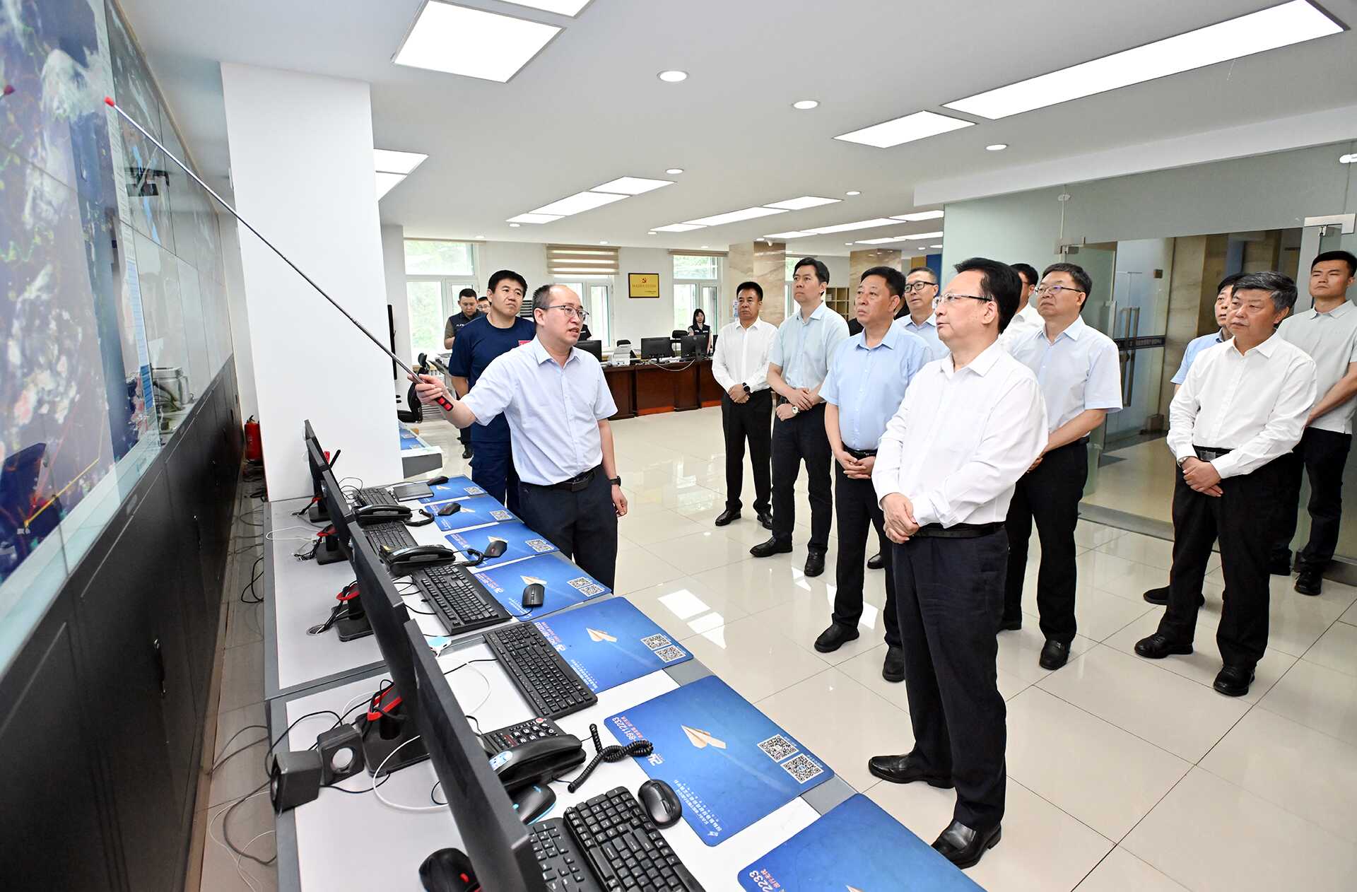 8月11日,省委书记景俊海,省委副书记、省长胡玉亭到省应急管理厅指挥中心,详细了解台风“卡努”最新动向和雨情水情汛情变化趋势。邹乃硕 摄