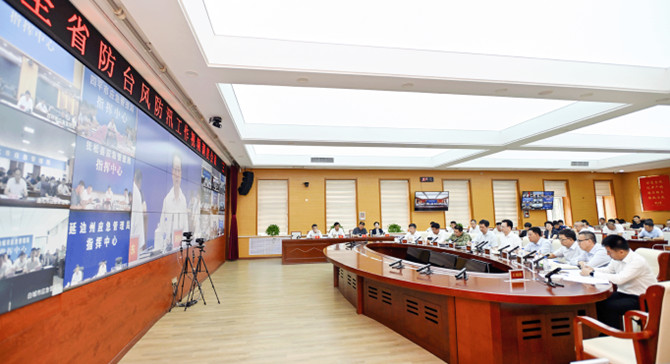 8月11日,省委书记景俊海主持召开全省防台风防汛工作视频调度会议,省委副书记、省长胡玉亭出席会议并讲话。邹乃硕 摄