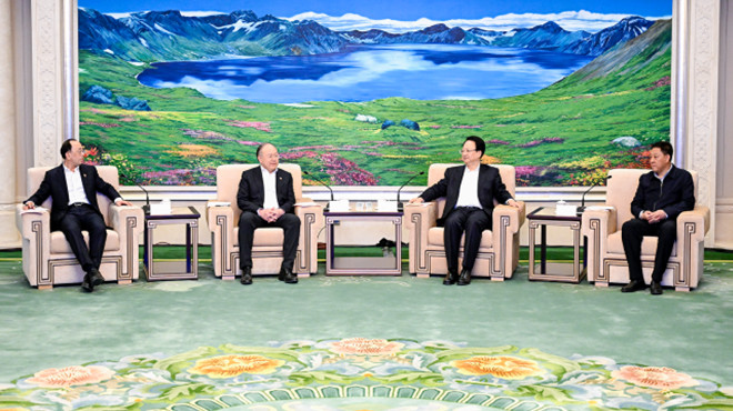 2月26日,省委书记景俊海,省委副书记、省长胡玉亭在长春会见中国中信集团有限公司党委书记、董事长奚国华一行。张野 邹乃硕 摄