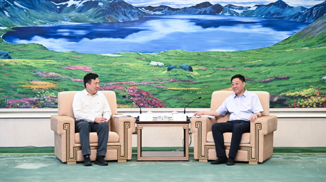 6月28日,省委副书记、省长胡玉亭在长春会见国家电力投资集团有限公司党组书记、董事长刘明胜一行。宋锴 摄