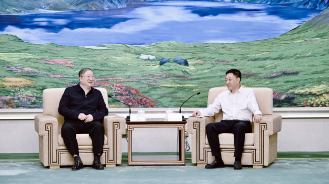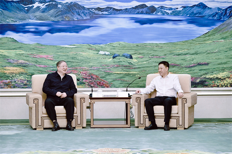 9月24日,省委副书记、省长胡玉亭在长春会见国家粮食和物资储备局党组书记、局长刘焕鑫一行。宋锴 摄