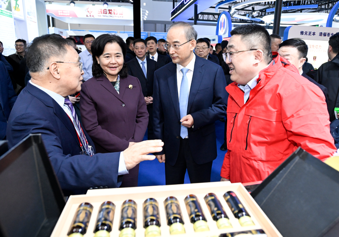 本届长春健博会以“新质引领健康、科技共创未来”为主题,吸引了648户企业参展,展出了众多医药健康领域最新科技成果,其中人参产品品类丰富、最受关注。黄强、胡玉亭到吉林长白山人参主题馆、通化展区等展馆展区驻足察看,与商家亲切交流,详细了解参展及经营情况,鼓励商家展好参、卖好参,让货真价实、优质优价成为常态。长春中医药大学和中国科学院长春光机所等多家单位联合攻关,利用高光谱成像仪,开展野山参参龄和质量检测鉴定。黄强、胡玉亭察看了解操作流程,希望他们进一步完善技术,不断提高检测精度,切实提升产品鉴定权威性和可信度。在成都城市展台前,黄强说,吉川两地中医药合作空间广阔,希望双方进一步加强交流互鉴,携手做优做强中医药产业。黄强、胡玉亭还听取了长春·永春现代生物医药城发展规划介绍。