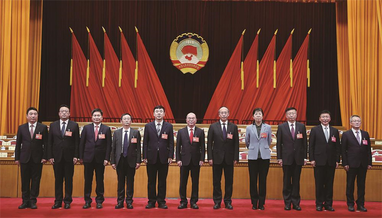 省政协十三届一次会议选举产生的政协吉林省第十三届委员会主席、副主席和秘书长与全体委员见面。