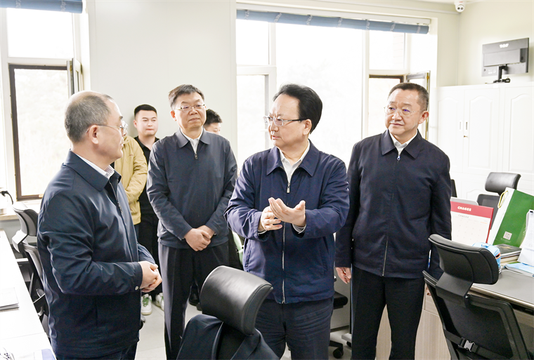 4月24日,省委书记景俊海以不打招呼方式,到省纪委监委机关就重点工作进行调研,在信息化运维管理中心实地察看了解信息系统建设运行等情况。邹乃硕 张野 摄