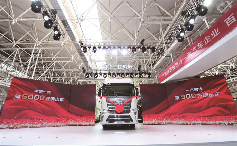 7月16日,中国一汽第6000万辆汽车,即第900万辆解放卡车在长春一汽解放J7智能工厂出车。