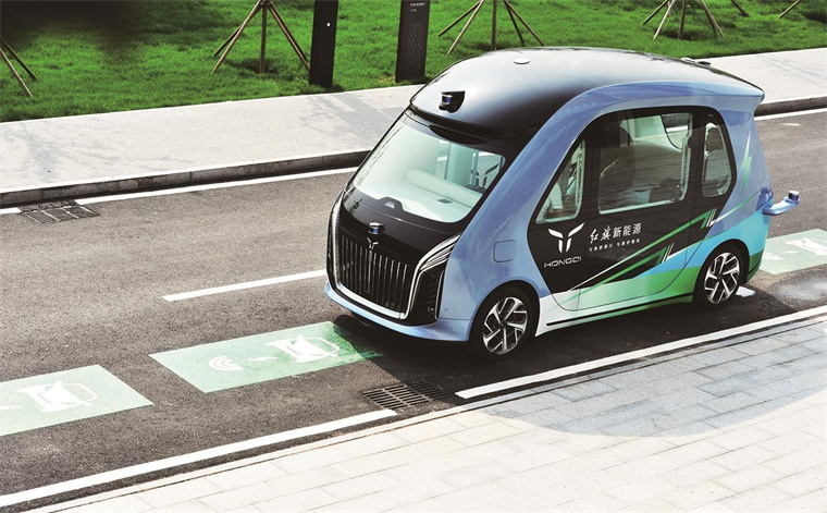长春市成功晋级国家首批智能网联汽车“车路云一体化”试点城市,图为一汽红旗智能小巴正在测试验证。