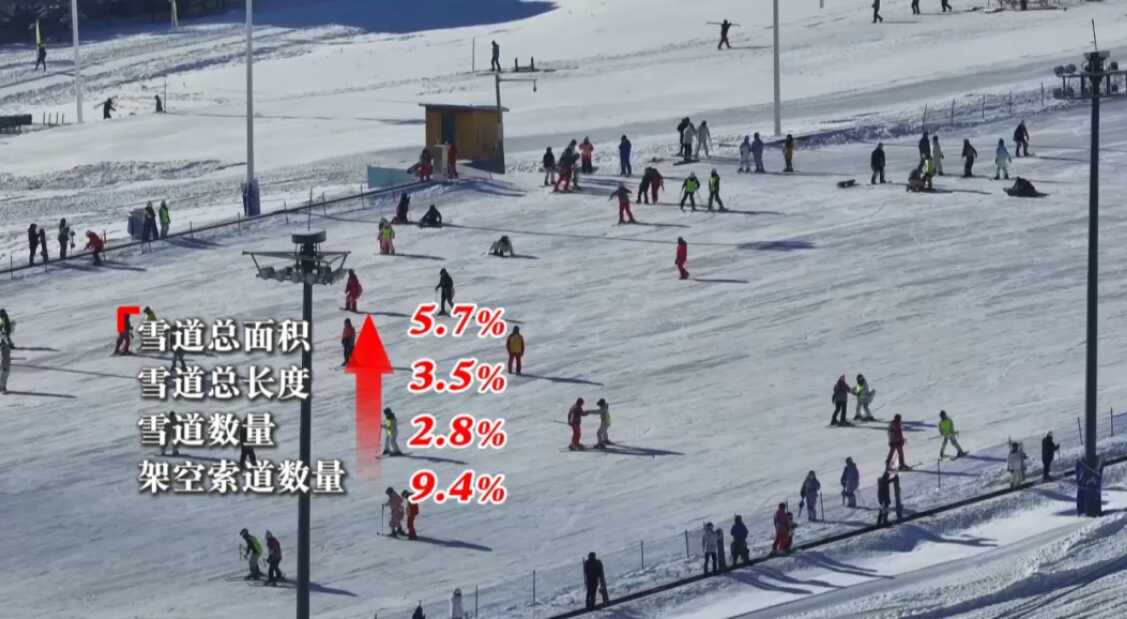 这个雪季,吉林省持续扩大冰雪经济新场景。万科松花湖启动建设西扩副中心滑雪场,新增造雪面积50万平方米,雪道9条;吉林北大湖新增造雪机100台,开放雪道条数从64条增至74条,雪道面积增至275公顷;万达长白山新增雪具1000多套。同上个雪季相比,全省新雪季雪道总面积、雪道总长度、雪道数量、架空索道数量分别同比增长5.7%、3.5%、2.8%、9.4%。