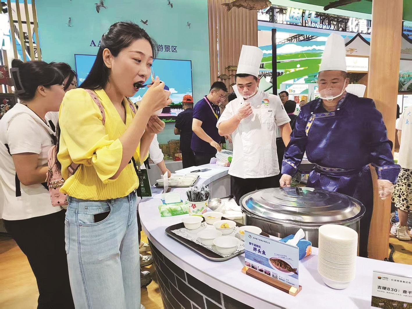 展会期间,松原展区日均接待参观群众超万人次,查干湖鱼、扶余四粒红花生、乾安黄金小米等特色产品成了抢手货。