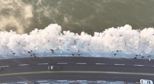 雾凇掩映下,吉林市松花江畔游人如织。 (资料图片)