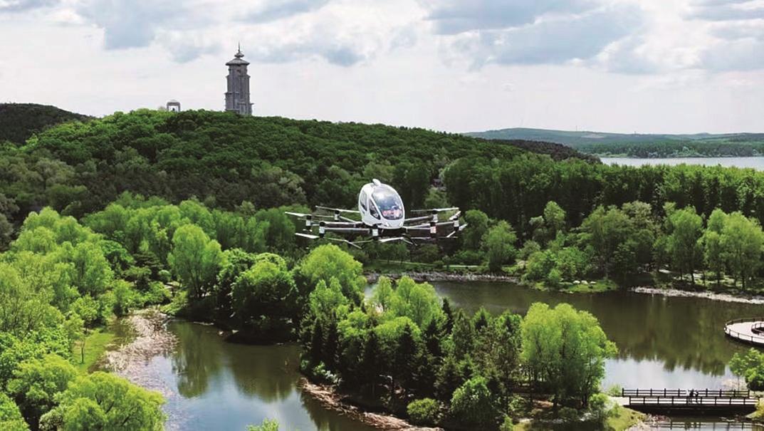 亿航EH216-S无人驾驶载人航空器在净月潭试飞。