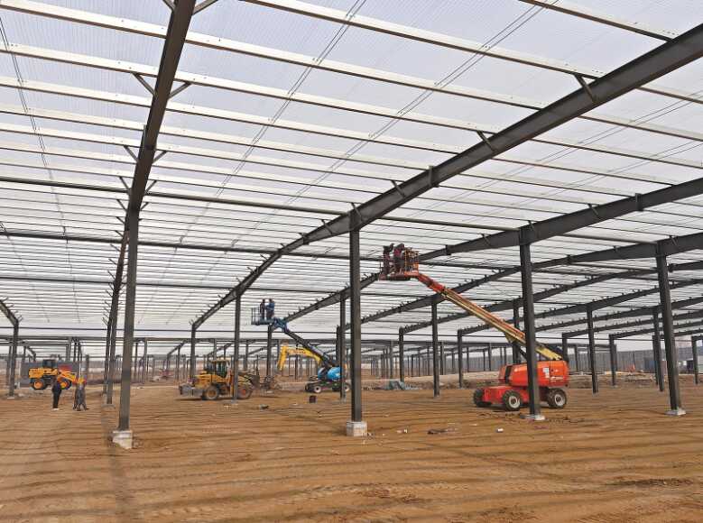 位于长春九台经济开发区的长春数字医药产业园二期项目正在进行钢结构搭建。