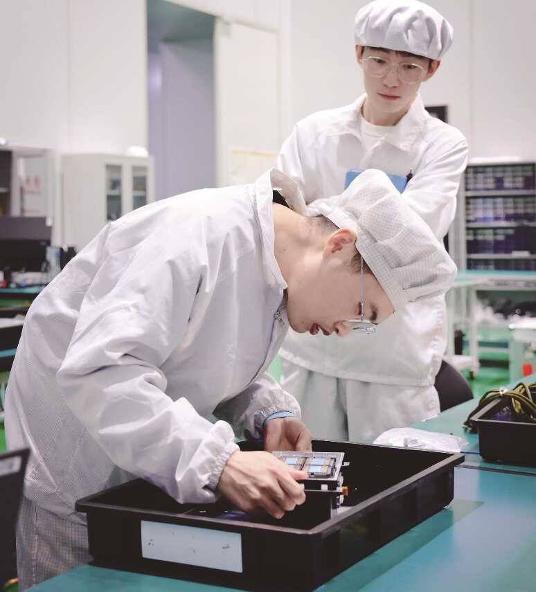 近年来,我省大力发展光电信息产业,加快核心技术攻关,在高端制造领域取得显著突破。长光卫星光电成像调试区内科研人员正在进行焦面电箱合箱。潘硕 摄