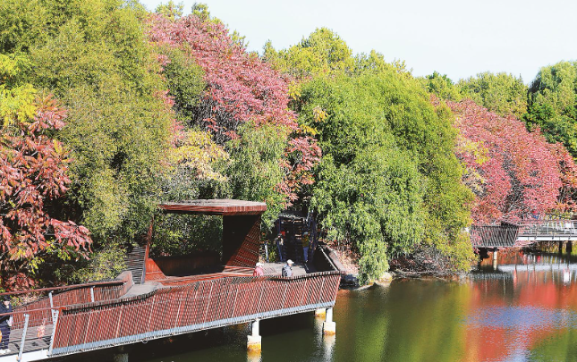 长春水文化生态园换上了斑斓盛装,成为市民赏秋的绝佳选择。