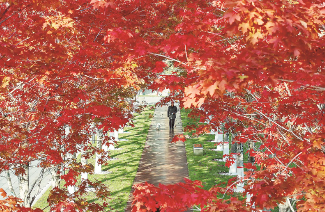 深秋时节,吉林科技职业技术学院校园内枫叶正红,绚烂的景致为校园增添了别样风采。