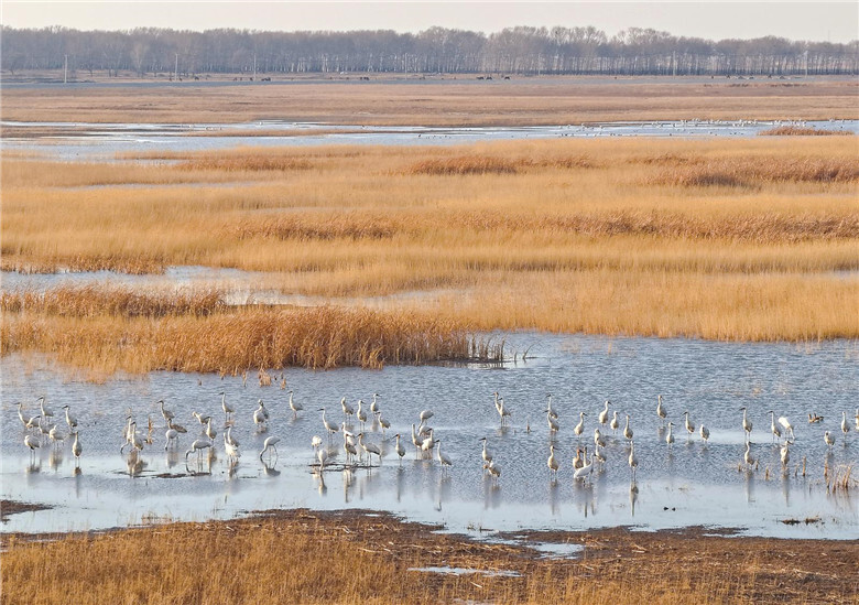 白鹤是莫莫格湿地的旗舰物种,也是吉林省的美丽生态名片。