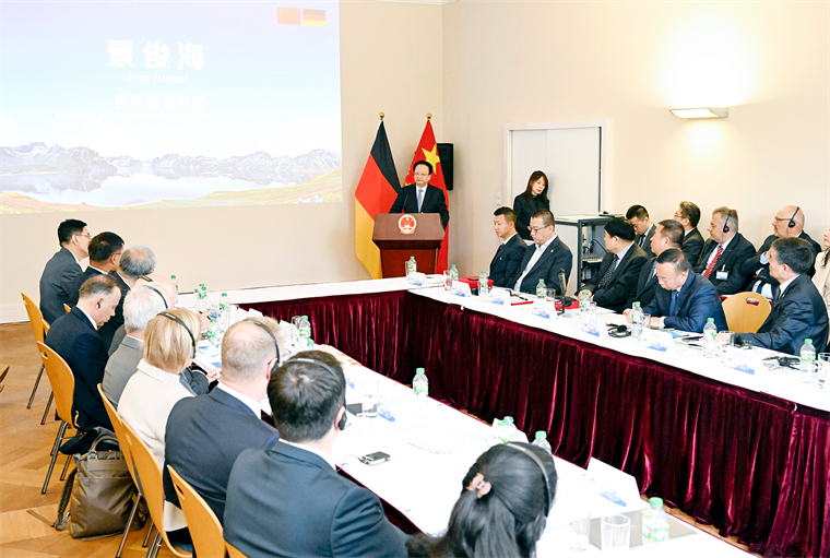 5月29日,吉林省代表团一行出席在法兰克福举行的中国吉林—德国经贸合作交流会,并见证双方7个重点合作项目签约。景俊海在讲话时指出,吉林省地处东北亚区域地理几何中心、中国实施东北全面振兴战略核心区,是中国“一带一路”向北开放的重要窗口和重要的工业基地、商品粮基地、清洁能源生产基地。当前,我们正在深入贯彻习近平总书记重要讲话重要指示精神,一体构建高质量发展体系、高品质生活体系、高水平安全体系,奋力推动新时代吉林全面振兴率先实现新突破。今年一季度全省GDP增速6.5%、连续两年位居全国第一,其他各项指标均处在全国前列,充分展现出吉林全面振兴稳住上升期、稳在快车道的良好态势。希望德国企业、商协会积极牵手吉林,进一步加强汽车、装备制造、现代农业、医药健康、新能源新材料、文化旅游等重点领域合作,不断扩大合作规模、丰富合作内涵、提升合作层次,共同谱写吉林省与德国经贸合作新篇章。我们将一如既往为广大来吉企业提供有力政策支持、强大要素保障、优质发展环境,让大家投资放心、创业安心、发展顺心。巴斯夫集团、西门子股份公司、拜耳集团、大陆集团、纬湃科技、科德宝集团、赢创集团、伟巴斯特集团、马瑞利集团、克诺尔集团、嘉利达集团、伟派克、冠捷科技集团、ABC紧固件、意大利多法公司、莱茵克斯特集团、米诺真兰燃气、博泽公司、洛恩航空,以及法莱美国际投资促进会、法兰克福工商会等30多家企业、商会代表参加交流会。会后,景俊海与嘉利达集团首席执行官克劳斯·汉克在巴登—符腾堡州埃伯巴赫举行会谈,推动辽源明胶合作项目加快建设,并见证双方签署进一步深化战略合作协议,同时就携手延伸明胶产业链条、做优做强医药健康产业进行深入交流。
