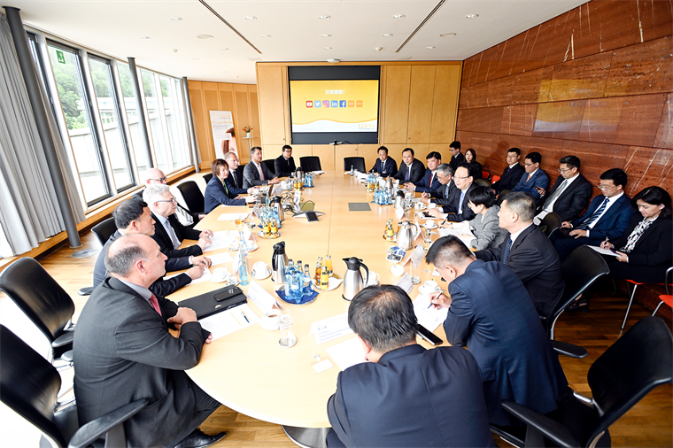 在德国访问期间,代表团一行拜会中国驻法兰克福总领事馆,并与华为欧洲区总裁鲁勇洽谈交流相关合作事宜。(邹乃硕 黄鹭)