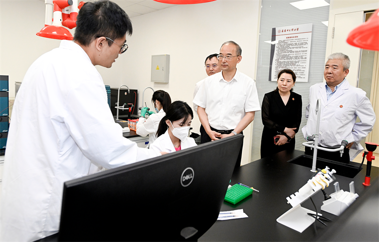 8月13日,省委书记黄强到长春中医药大学调研,在东北亚中医药研究院与科研人员亲切交流。张野 摄