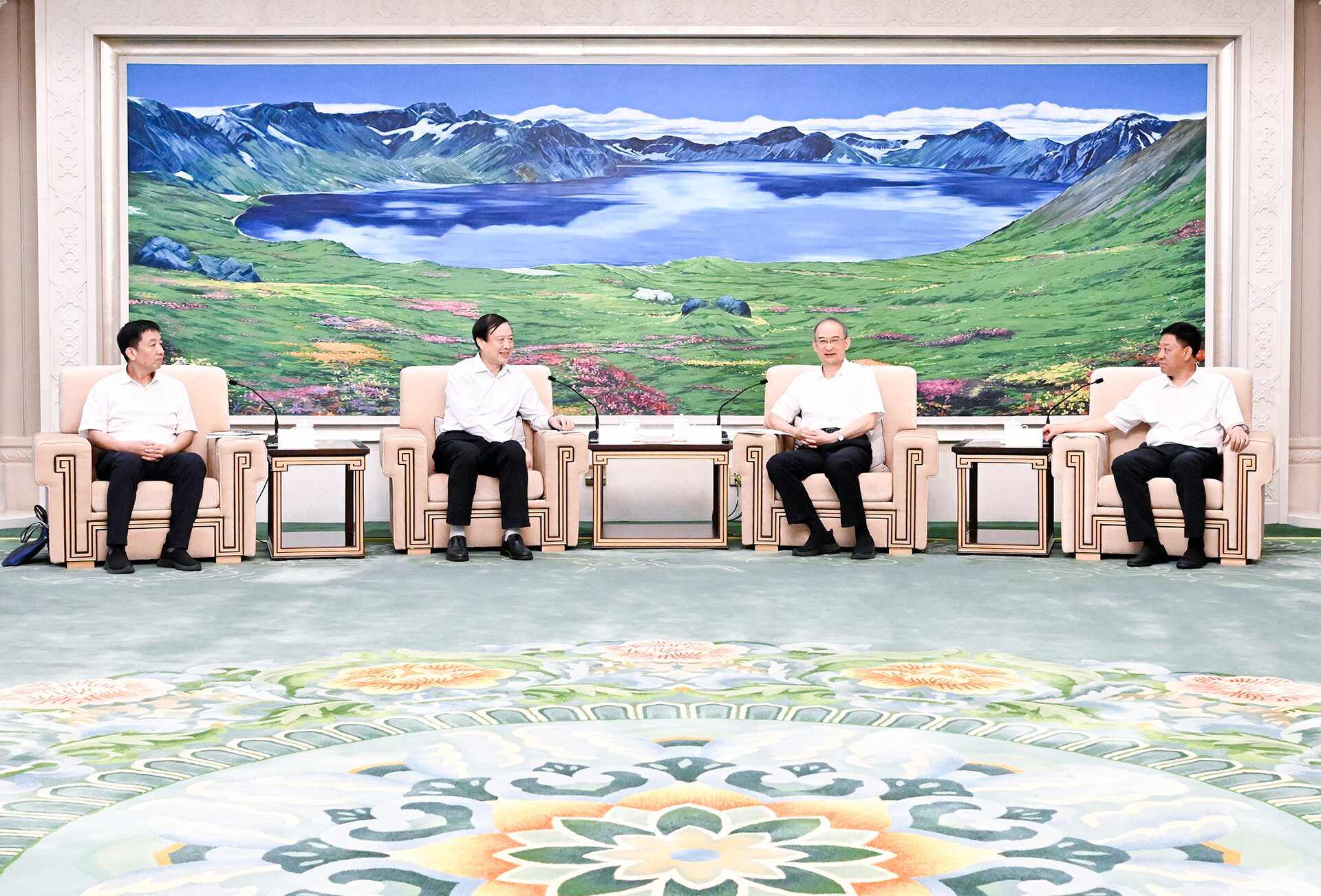 8月4日,省委书记黄强,省委副书记、省长胡玉亭在长春会见工业和信息化部党组成员,国家烟草专卖局党组书记、局长,中国烟草总公司总经理张建民一行。张野 摄