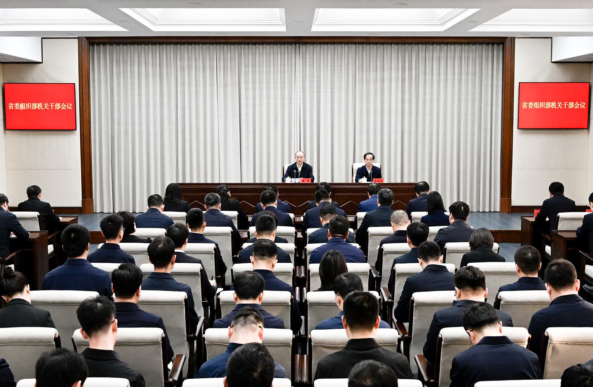 2月9日,省委组织部召开机关干部会议。省委书记黄强出席并宣读中央有关决定。张野 摄