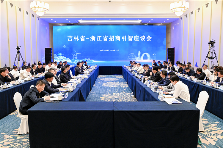 10月18日,吉林省—浙江省招商引智座谈会在杭州召开。省委书记景俊海出席会议并讲话。省委副书记、省长胡玉亭主持会议。邹乃硕 摄