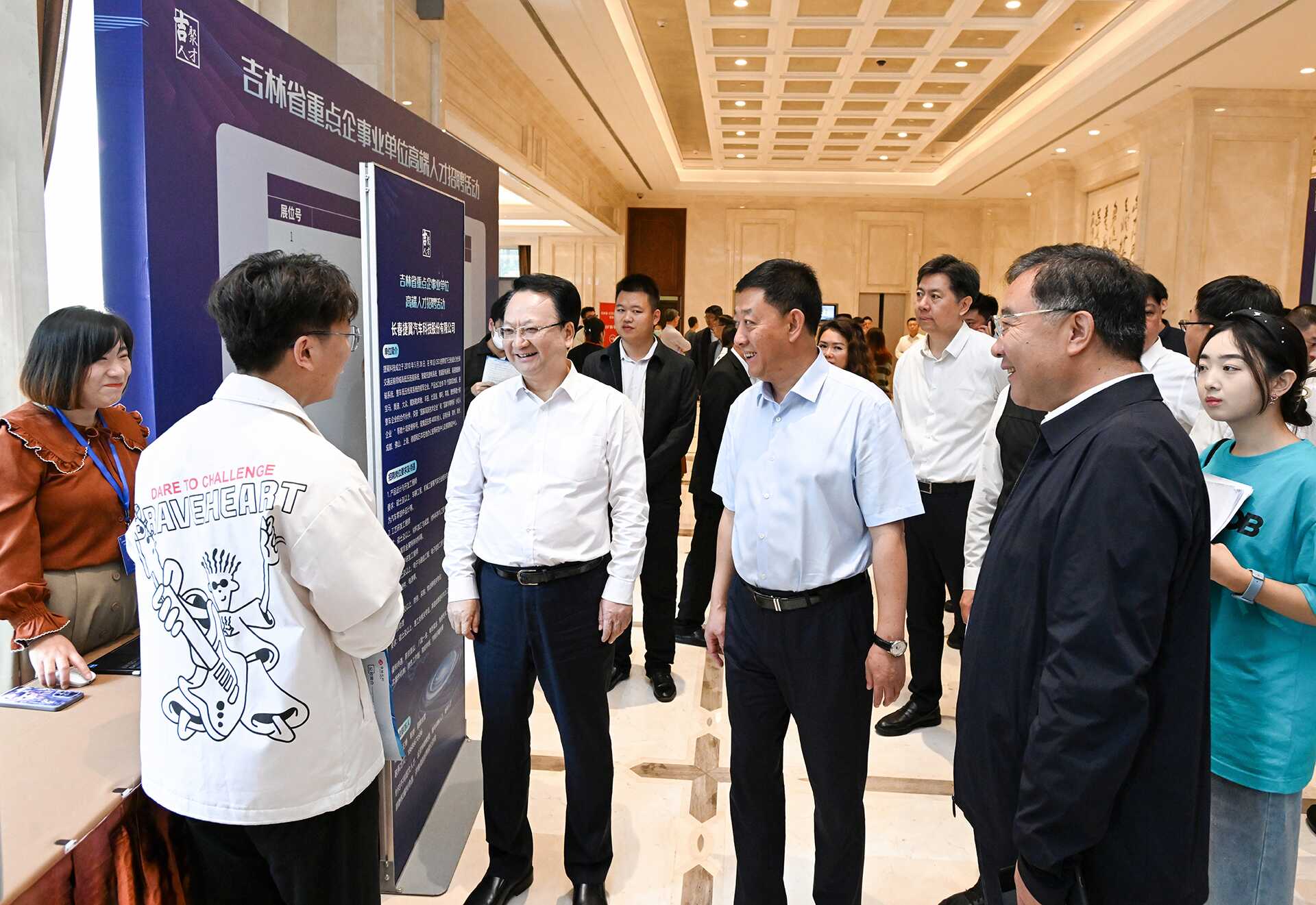会前,景俊海、胡玉亭来到吉林省重点企事业单位高端人才招聘南京站活动现场,详细了解招聘情况,与求职人员亲切交流,希望大家深入了解吉林、主动选择吉林,把事业和生活放在吉林,努力在吉林实现青春梦想、书写人生华章。