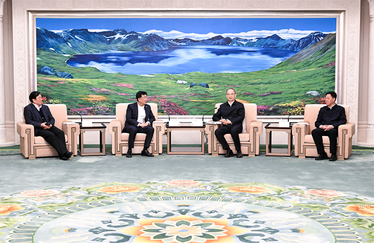 12月16日,省委书记黄强,省委副书记、省长胡玉亭在长春会见中国钢研科技集团党委书记、董事长张少明和总经理高宏斌一行。张野 摄