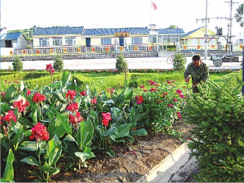 敦化市雁鸣湖镇小山村不断完善基础设施,打造整洁村容。图为村民在修剪村中的绿化景观。